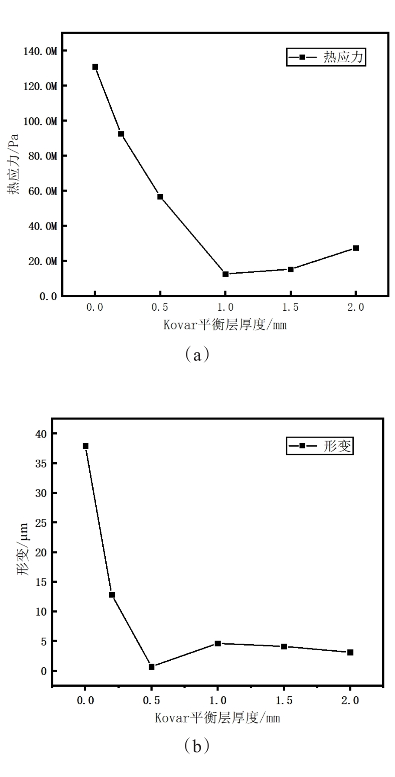 摘要:借助有限元软件分析了原始探测器模块和加入Kovar平衡层探测器模块的应力分布情况,模拟结果表明,增加Kovar平衡层后,探测器HgCdTe外延层上的热应力有所减小,而探测器芯片表面中心位置处的形变量明显减小。在不改变平衡层材料前提下,当平衡层厚度为0.2 mm、0.5 mm、1 mm、1.5 mm和2 mm时,HgCdTe芯片的最大应力随平衡层厚度的增加呈现先大幅度减小后小幅度增加的趋势,在厚度取1 mm时探测器芯片的最大热应力值最低。通过增加Kovar平衡层可有效改善大面阵红外探测器芯片的热应力水平。