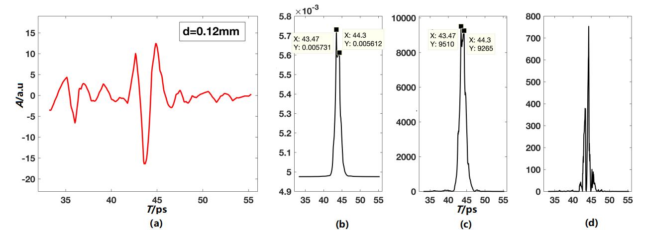 摘要:提出将希尔伯特变换和功率谱估计相结合的光谱分析算法,对太赫兹反射时域波形进行处理,并将该算法应用于太赫兹时域光谱成像,将缺陷厚度和图像灰度关联,实现同时对玻璃纤维层压板内部缺陷厚度、位置和形状的成像检测。实验结果表明:将多重信号分类谱估计、自回归谱估计和希尔伯特变换结合时,能成功区分厚度为0.08 mm缺陷上下表面反射脉冲,反射脉冲的时间分辨率小于0.5 ps,缺陷厚度的检测误差不高于0.03 mm。