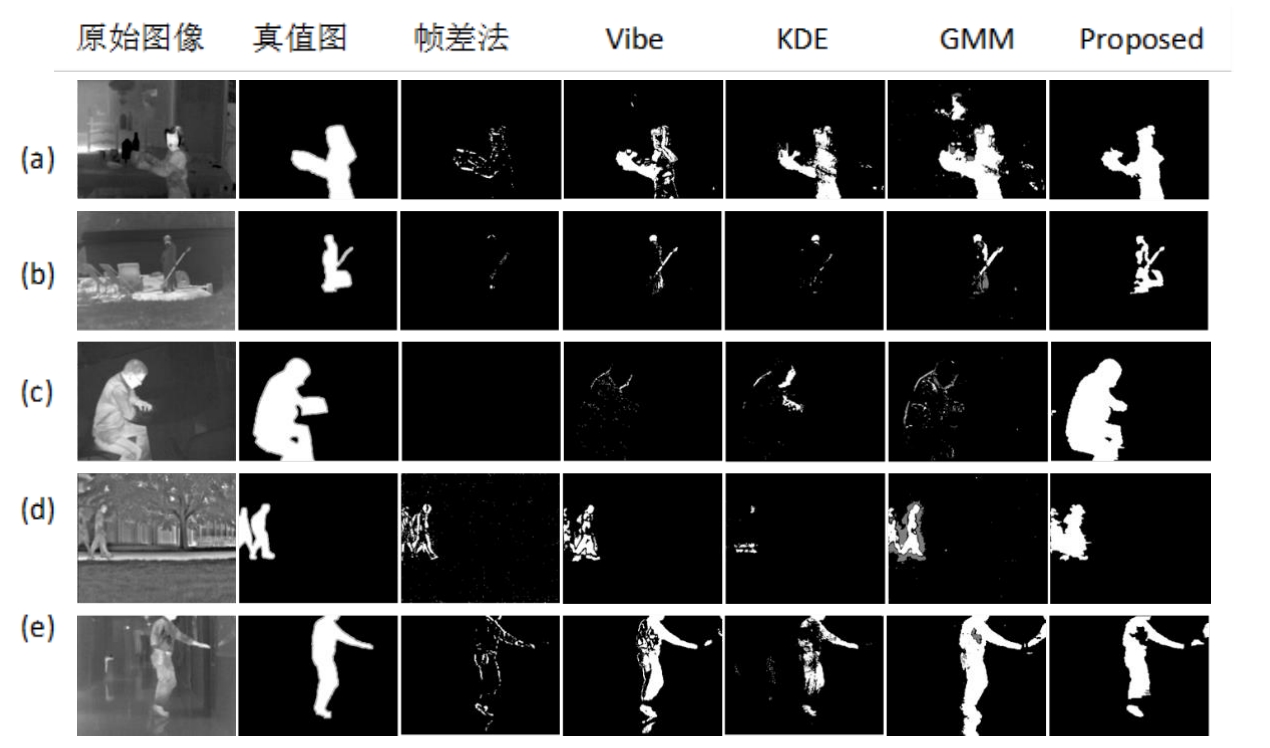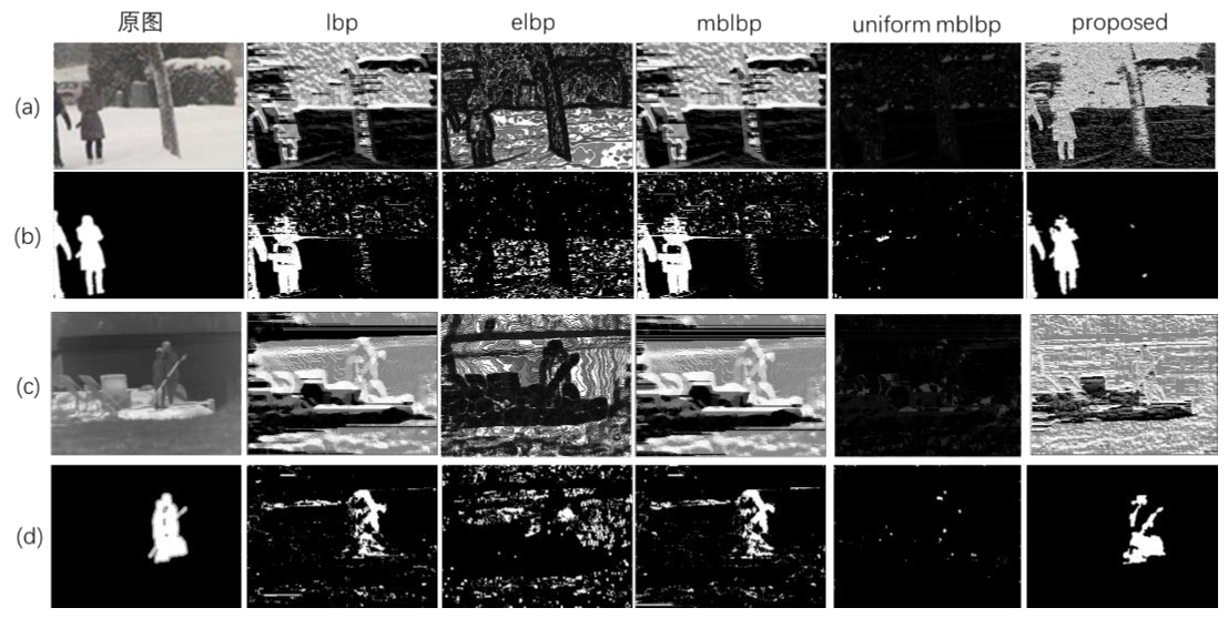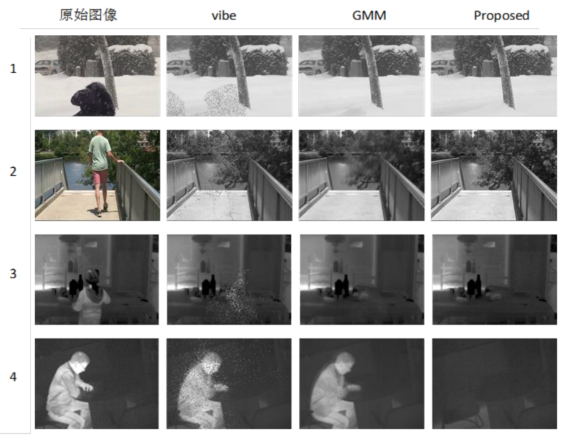 摘要:在雨雪天气、树叶晃动、水面闪烁等有复杂背景的可见光与红外场景中,快速准确地提取完整目标一直是运动目标检测中的首要难题。为了满足实时性,并针对现有视频的前景提取算法依赖先验信息、召回率低、缺乏纹理和噪声较大等问题,提出了一种基于直方图统计和改进的局部二值模式(Local Binary Pattern, LBP)纹理特征相结合的背景建模方法。首先,使用各像素直方图的众数作为参考背景,无需先验知识,节省了大量存储空间,再采用邻域补偿策略提出了一种改进的S_MBLBP纹理直方图与参考背景进行背景建模,消除了大部分动态背景和光照变化影响,实现目标的精确提取。实验表明,所提的算法在红外和可见光的多种复杂场景下,能快速提取前景目标的同时,提高了准确率和召回率。