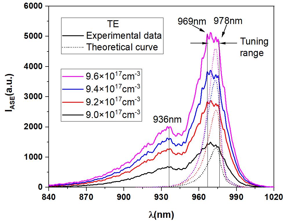 摘要:提出了一种采用增益芯片和光栅外腔的双波长可调谐半导体激光器。增益芯片采用了富铟团簇量子限制结构作为其量子限制结构,由于该结构独特的平顶增益特性,可以使激光器在双波长调谐范围内实现光强稳定。本研究中的谐振腔包括内部谐振腔和外部谐振腔,其中内部谐振腔由增益芯片的两个自然解理面构成,以支撑整个系统工作在特定波长。外部谐振腔由增益芯片的一个自然解理面和光栅构成,可实现969.1~977.9 nm的工作波长范围。最终该系统基于单个增益芯片和单个光栅实现了同步双波长输出,双波长的频率差在THz范围。本研究有望为实现双波长差频太赫兹源提供一种可能的解决方案。