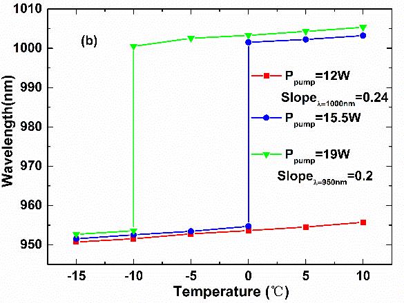 摘要:报道了一种结构紧凑的垂直外腔面发射激光器(Vertical-External-Cavity Surface- Emitting Laser,VECSEL)及其双波长调控。通过调控泵浦光功率,实现了VECSEL输出的两个激光波长之间的相互转换,双波长的间隔接近50 nm。VECSEL的输出功率曲线呈现明显的两次翻转,翻转点对应了激射波长的转换。这是由于泵浦功率变化改变了增益芯片内部的温度,进而通过热调谐使得发光区增益峰值被调谐到腔模的不同位置。在0 ℃时,每个激射波长的最大输出功率都在1.5 W以上。随着泵浦功率的改变,激射波长可以在950 nm和1000 nm之间切换,同时还可以在1.5 W以上的功率水平下实现双波长同时激射。这种可切换波长及双波长同时激射的VECSEL器件在光调制、差频等领域有较大应用潜力。
