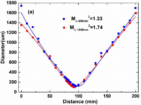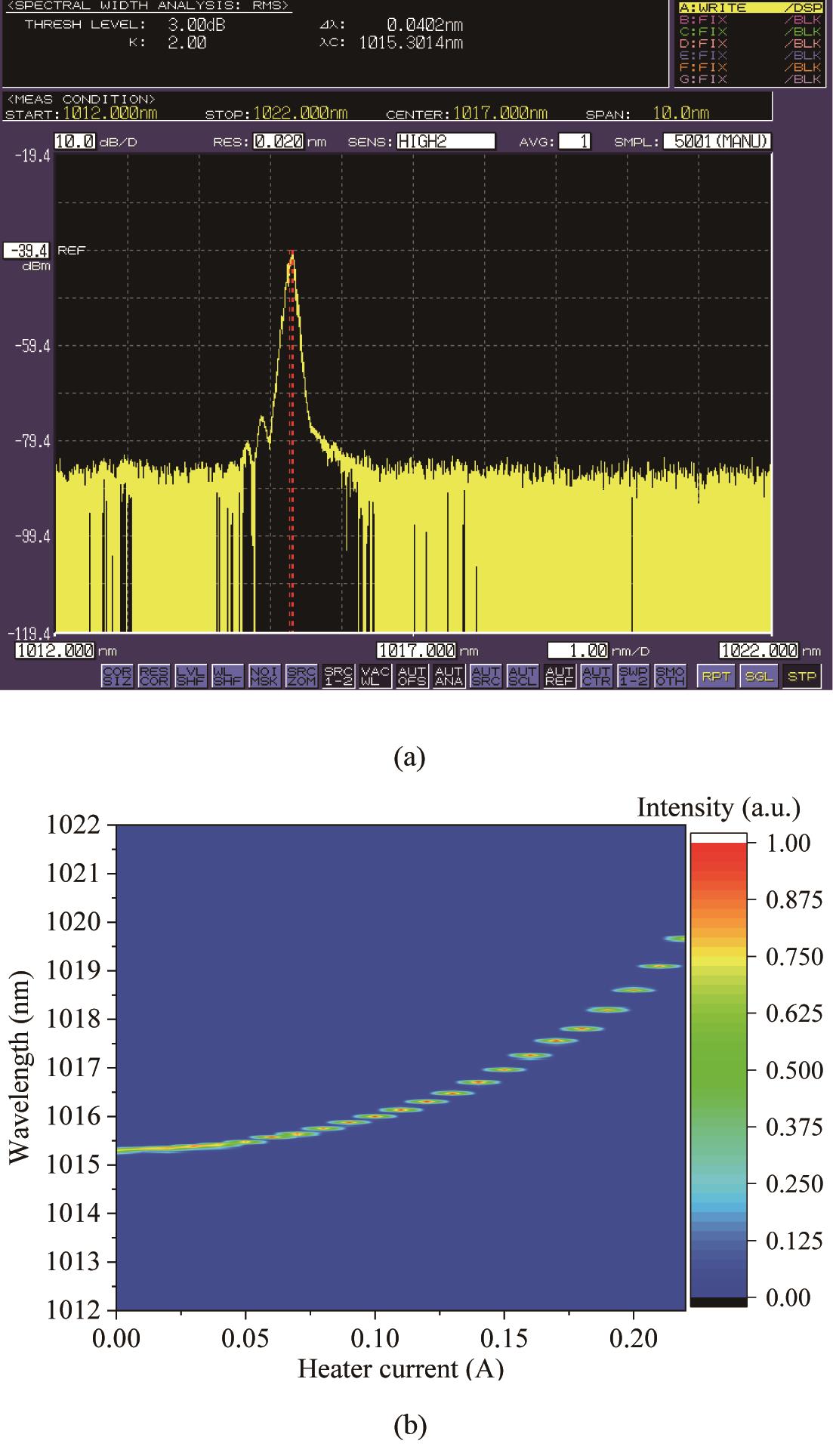 摘要:为研制近衍射极限的高功率半导体激光器,采用了片上光栅、窄脊型波导、锥形放大器一体集成的主控放大(Master Oscillator Power-Amplifier, MOPA)技术路线,以长度为8 mm、脊型宽度为3 μm的波导为单模种子源,配合长度为7 mm、全角为3.3°的锥形放大器,实现了功率10.3 W、慢轴光束质量M2(1/e2)因子=1.06,3 dB线宽40 pm,工作电光效率50.5%的半导体激光输出,并采用片上电致加热光栅调谐技术,实现了中心波长在4 nm范围内连续可调。