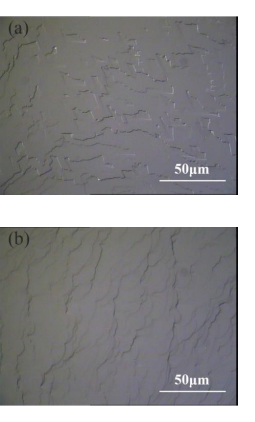 摘要:研究了碲锌镉衬底(111)晶面的不同极性对水平推舟液相外延生长碲镉汞薄膜的影响。实验结果显示,(111)A面碲锌镉衬底水平液相外延生长碲镉汞薄膜材料组分和厚度均与常规(111)B面碲锌镉衬底碲镉汞薄膜材料相当;碲镉汞母液在采用(111)A面、(111)B面衬底进行液相外延生长的碲镉汞薄膜上接触角分别为(50±2)°和(30±2)°,结合微观模型分析确认碲镉汞母液在碲镉汞薄膜(111)A面存在更大的表面张力;观察并讨论了(111)A面碲镉汞与(111)B面碲镉汞薄膜材料表面微观形貌的差别;实验获得的(111)A面碲镉汞薄膜XRD半峰宽为33.1 arcsec。首次报道了(111)晶面选择对母液残留的影响,研究结果表明,采用(111)A面碲锌镉衬底进行碲镉汞水平推舟液相外延生长,能够在不降低晶体质量的情况下,大幅减小薄膜表面母液残留。