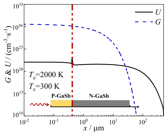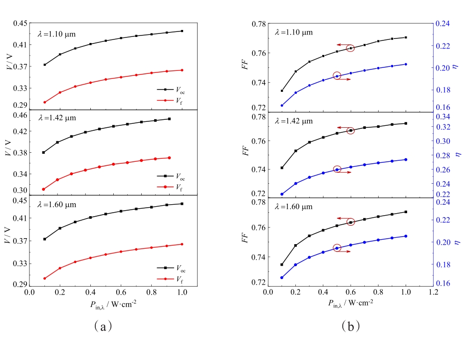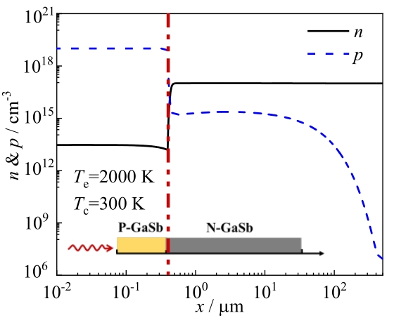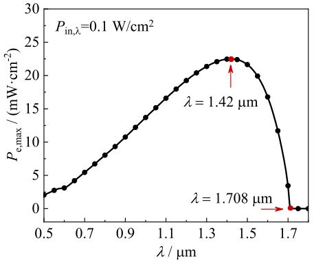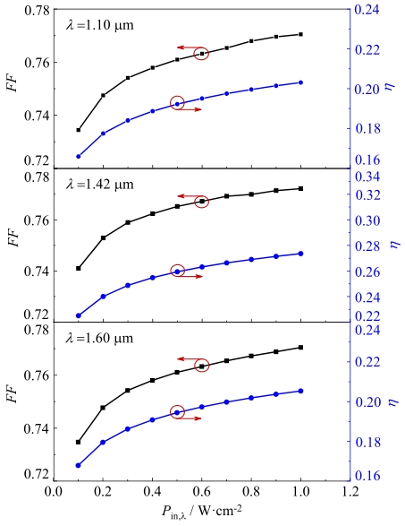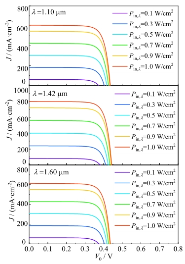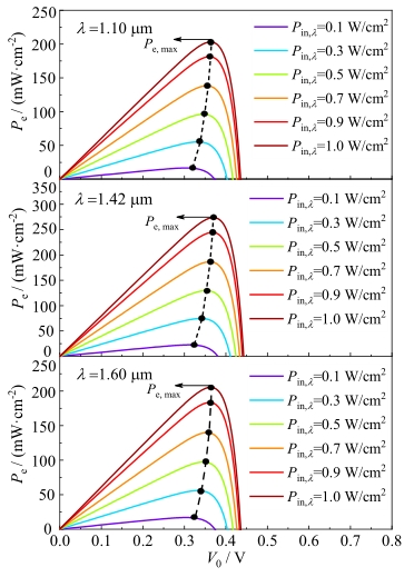 摘要:热光伏发电技术具有高效率、高功率密度、适应热源广泛等特征,揭示其核心部件—电池芯片内部光电能量转换物理机制及影响规律,有利于系统性能的进一步提升。针对GaSb热光伏电池内部的光-电转换过程,建立了微观载流子输运模型,采用光-电耦合仿真方法对其性能参数进行了数值模拟。重点探究了入射辐射光谱特性及功率密度对电池性能的影响。结果表明:当入射光谱辐射功率相同时,电池转换效率随光谱变化呈现明显的非单调性,在波长1.42 μm处达到峰值22.50%。同一光谱下,随着辐射功率密度提高,电池最大输出电功率密度等比例增大,转换效率也随之增大但增幅逐渐减小,波长1.42 μm时增幅最大约4.85%。