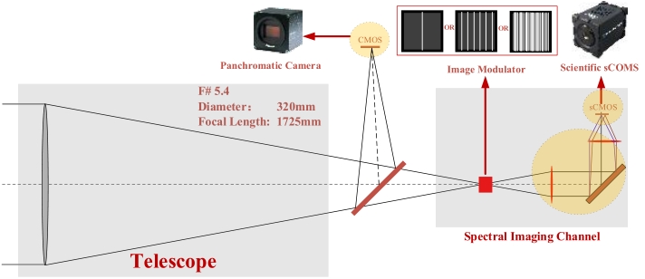 摘要:视频光谱成像技术是目前遥感探测发展的一个重要方向,可以实现4维信息获取(两维空间+光谱+时间),对于动态目标探测等应用场景有十分重要的意义。目前的技术手段是以滤光片方式为主,不具备光栅作为分光元件时的高光谱分辨率优势。基于此,提出了非耦合狭缝阵列扫描光谱成像(uSASHI)和编码狭缝阵列扫描光谱成像(cSASHI)系统,通过增加狭缝数目的方式,实现同一时刻多个视场信息的获取,极大地提升信息获取效率。uSASHI的每个狭缝获取信息之间不会耦合,n条狭缝可以实现n倍的信息获取效率的提升,cSASHI的狭缝按照压缩感知理论排列,可以实现欠采样条件下(采样率α≤1)视频光谱成像,信息获取效率可以提升n/α倍。本文设计的系统最终实现了1024*496*30的光谱数据立方体10 Hz视频光谱成像方式,cSASH实现了更高帧频。所提系统为视频光谱成像技术提供了新的方向,为未来动态目标探测等应用打下了基础。