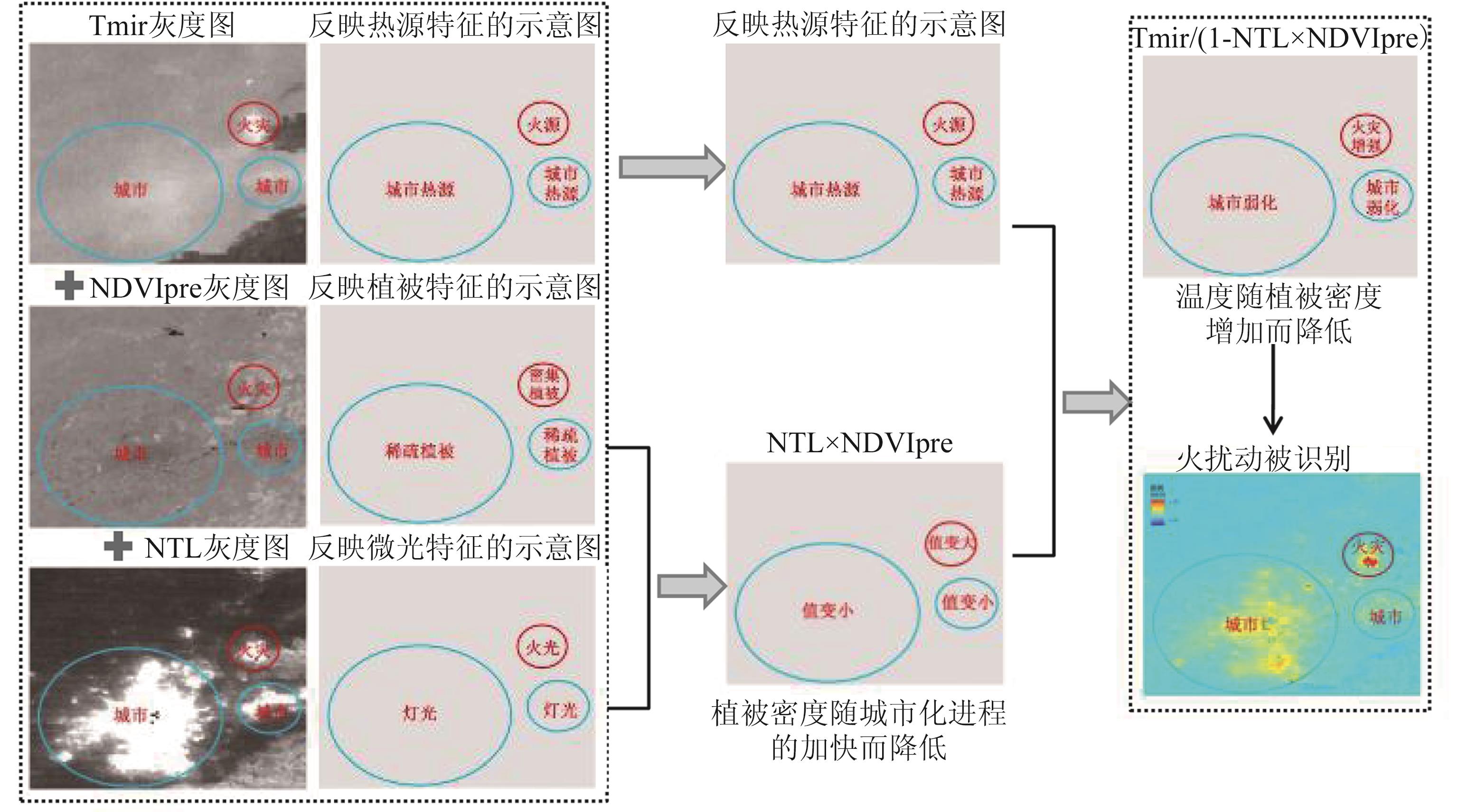 摘要:随着光电技术的发展,低照度条件下的微光成像技术及其应用成为近年来的研究热点之一。在微光遥感影像上,很难单纯依靠辐射亮度或温度,将森林火灾与工业燃烧、城市等热源充分地分离,同时由于频繁的数据饱和问题,目前NPP火灾产品仅提供探测位置信息。因此,为了在各种高亮度异质热源中实现森林火灾识别,进一步推进火灾探测产品像素级表征,基于地表温度通过潜热传递随植被密度的增加而降低的原理,提出了一种新的光谱指数—增强夜光火灾扰动指数(ENFDI),并与传统的中红外波段(Tmir)火灾识别方法进行对比分析。结果表明,ENFDI可以增强森林火灾与城市热源之间的光谱差异,提高微光条件下森林火灾识别能力,森林火灾ENFDI明显高于城市热源区;ENFDI能够有效缓解微光波段易饱和的影响,ENFDI不仅可以明显地分辨出潜在饱和区内火光亮度的差异,增强火灾像元的可区分性,而且与中远红外亮温差的相关性R高达0.94~0.97,明显高于微光波段亮度(NTL)与中远红外亮温差的相关性(0.82~0.83);ENFDI具有一定的稳定性,它不受月相变化的影响,在有无月光情况下夜间森林火灾均被识别;ENFDI森林火灾识别精度(87.66%)高于传统中红外波段(Tmir)火灾识别精度(83.91%),与NPP /VIIRS主动火灾产品(VNP14IMG)具有良好的总体对应关系,定位偏差在628 m以内。因此,ENFDI指数对森林火灾的识别具有敏感性、稳定性和准确性,为进一步实现火灾像素级表征提供可行性参考。