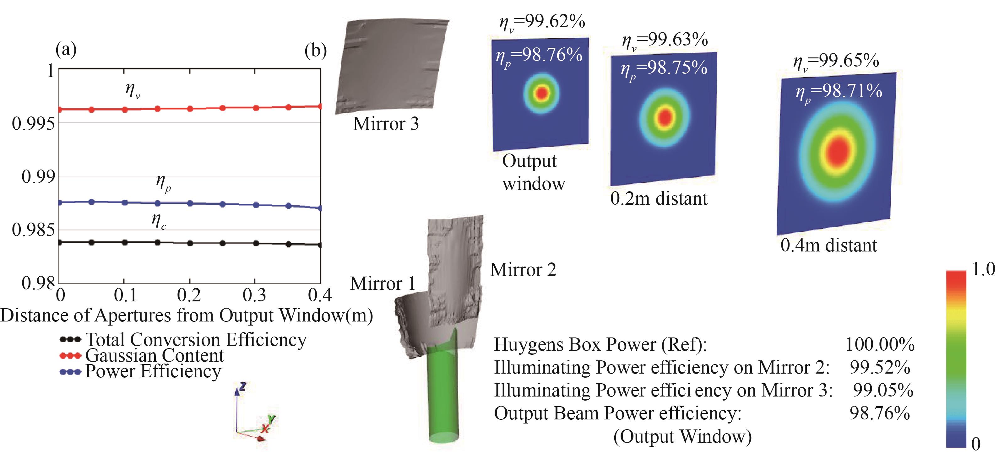 摘要:成功实现高转换效率的140 GHz TE22,6准光模式变换器原型设计。基于周期微扰原理设计Denisov辐射器,实现低边缘绕射的初级出射波束。针对三镜面光路系统,采用全矢物理光学积分作为主要计算手段,围绕主极化场分量进行三级相位修正面迭代优化,实现高出射高斯纯度的模式场转换,其中一级镜的修正有效改善了辐射器出射的不理想性。基于全矢数值仿真确认,相比原二次曲面原型设计,相位修正后的变换器系统的出射高斯纯度从92.7%提高到99.6%,结合98.8%以上的功率传递效率,实现了性能优越的高阶回旋管准光模式变换器原型设计。