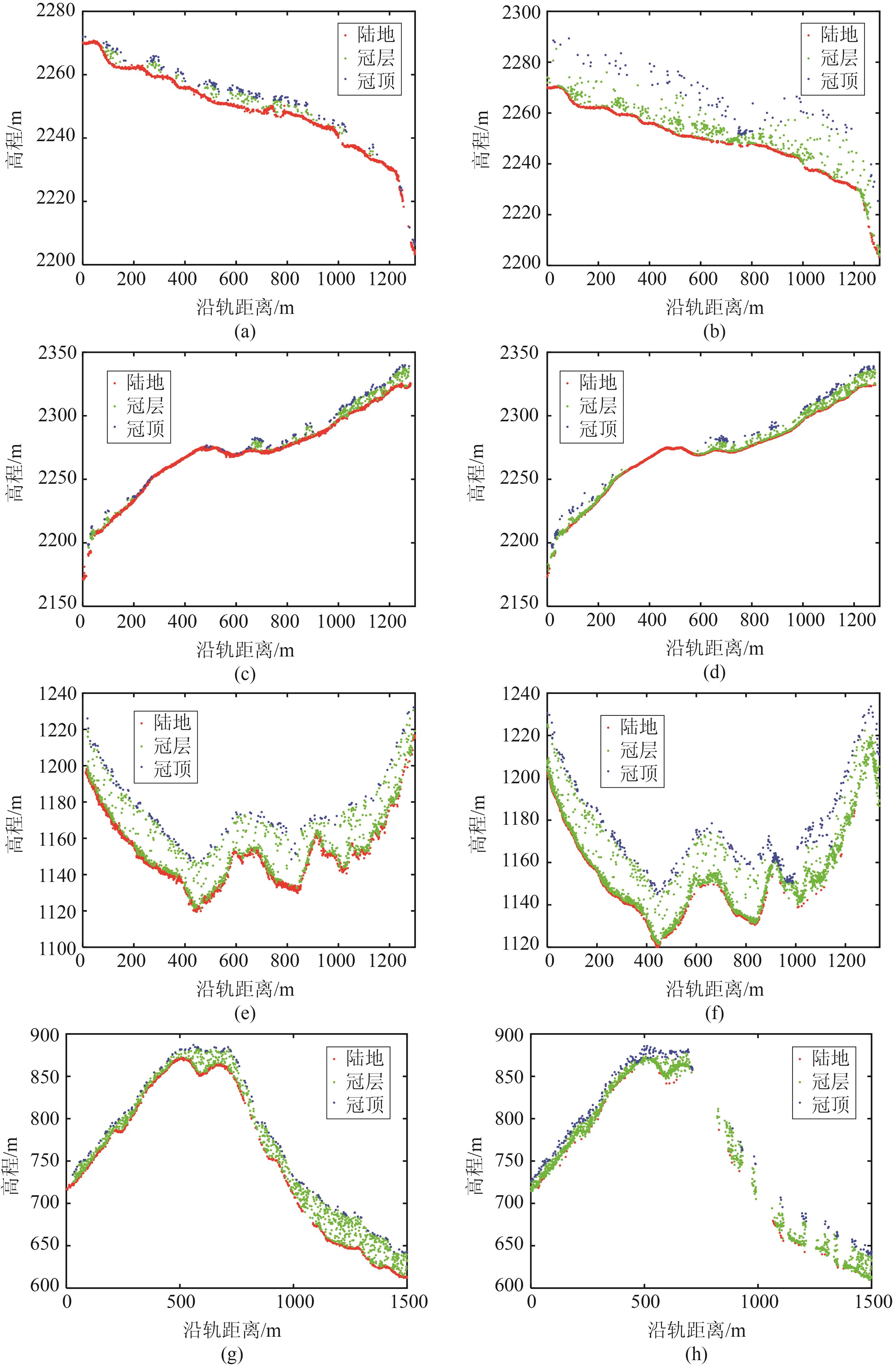 摘要:星载光子计数激光雷达在接收信号的过程中会产生大量噪声,并且在复杂的山区地形中信噪比低,极大地影响对植被点云信号的准确提取。为解决该问题,提出了一种基于山地坡度的密度聚类算法。通过分析点云数据的密度和森林目标地形特征,用最大密度中心搜索法进行粗去噪,基于点云数据计算坡度角以优化密度聚类,完成数据精去噪。通过对提取的森林区域信号进行分类,拟合植被冠层廓线和地表廓线,结果表明本算法提取植被光子信号的准确率较高,地面与冠层廓线的RMSE分别为0.3588 m和3.7449 m,更适用于植被遥感点云数据处理。