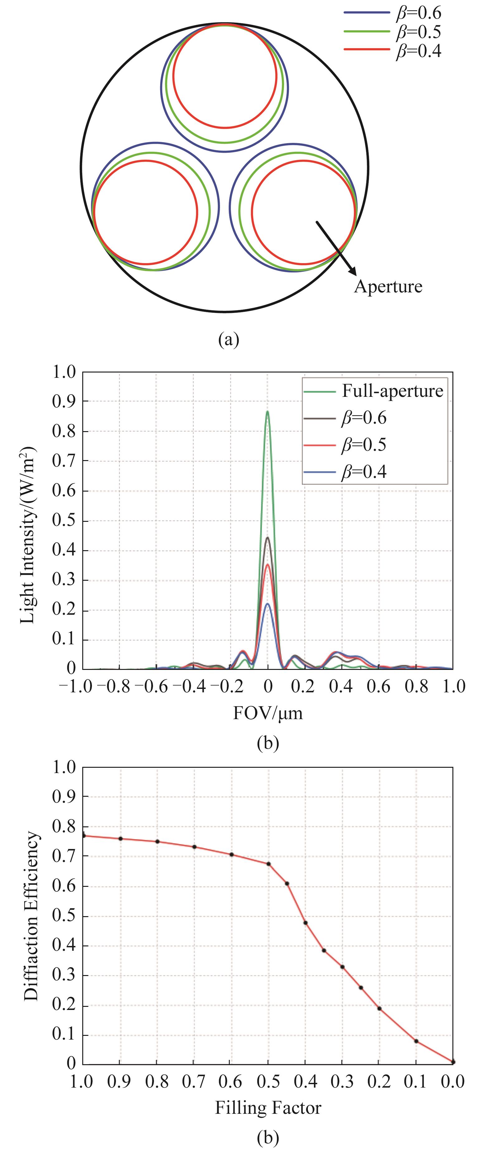 摘要:基于衍射成像机理,建立红外合成孔径衍射光学系统调制传递函数(MTF)和信噪比(SNR)模型。随后,基于三维时域有限差分(FDTD)方法计算成像系统衍射效率,进而结合调制传递函数与信噪比表征系统成像特性。最后,分析了不同工作波长、视场和填充因子对主镜成像特性的影响。分析结果表明,红外合成孔径衍射光学系统的衍射效率、MTF和信噪比均具有空变、谱变特性,且随主镜填充因子的减小而降低。当填充因子为0.6时,与理想的全孔径系统相比,MTF积分面积降低45.42%,信噪比减小4.92 dB。该模型可用于分析红外合成孔径衍射光学系统成像质量,为成像系统的设计提供参考。