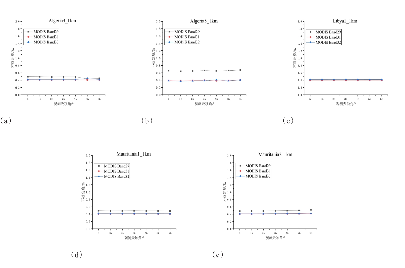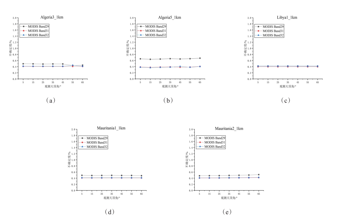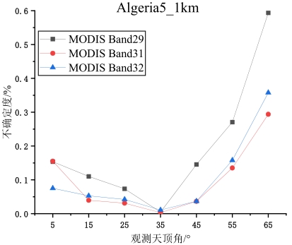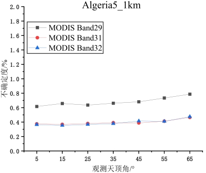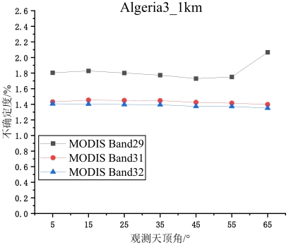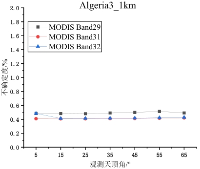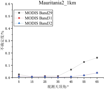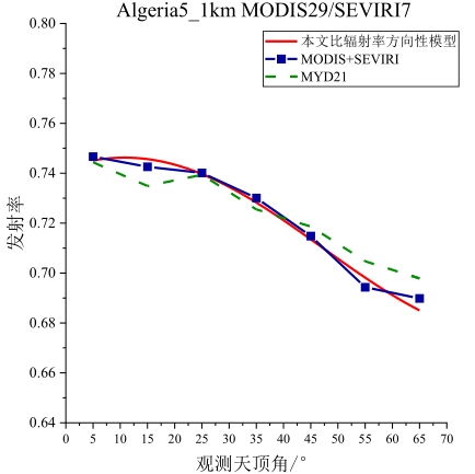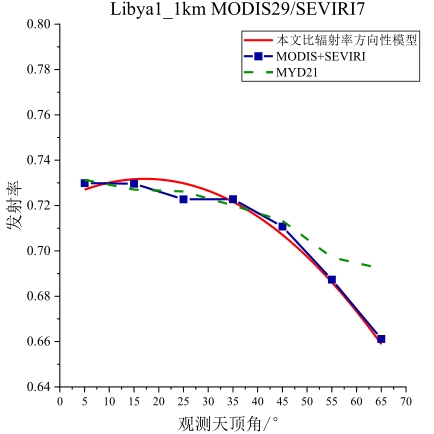 摘要:地表比辐射率方向性研究是国际热红外定量遥感研究领域的热点与难点,现有的热红外沙地比辐射率方向性模型存在先验参数较多、精度较低、适用性差等问题。论文基于5个伪不变定标场,即Algeria3_1km、Algeria5_1km、Libya1_1km、Mauritania1_1km及Mauritania2_1km,综合利用长时序极轨卫星载荷AQUA/MODIS与静止轨道卫星载荷MSG/SEVIRI多角度观测数据,经过载荷相互校准、大气纠正、影像数据时空匹配等处理,基于热红外辐射传输方程,获取0~65°观测天顶角范围内各研究区方向性比辐射率,建立公里级像元尺度比辐射率方向性模型,并对其进行了不确定度评估。结果表明:地表比辐射率随观测天顶角增大而降低,其方向性效应随波段中心波长的增加而减小,Algeria5_1km区域的方向性效应最小,Mauritania1_1km区域的方向性效应最强;各研究区比辐射率方向性模型不确定度均随观测天顶角的增大而增大,模型不确定度均优于3%。