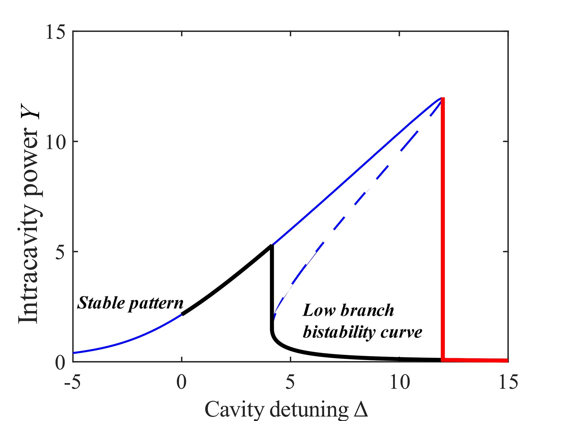 摘要:本文研究了氮化硅微腔在2 μm波段的光学频率梳产生。通过几何设计对氮化硅波导进行色散调控,选取合适的总线波导尺寸,从热吸收理论出发,讨论氮化硅微腔不同调制频率下的热折射噪声。以非线性薛定谔方程为基础模型,研究不同色散作用下的腔体演变过程。数值结果表明,氮化硅在2 μm波段能够更清晰地观察系统的滞后状态转变,即系统向稳定域转变过程的弛豫振荡现象,同时在高阶色散的作用下,腔体能够更快地向稳态孤子转变,这为研究呼吸孤子提供了方案。