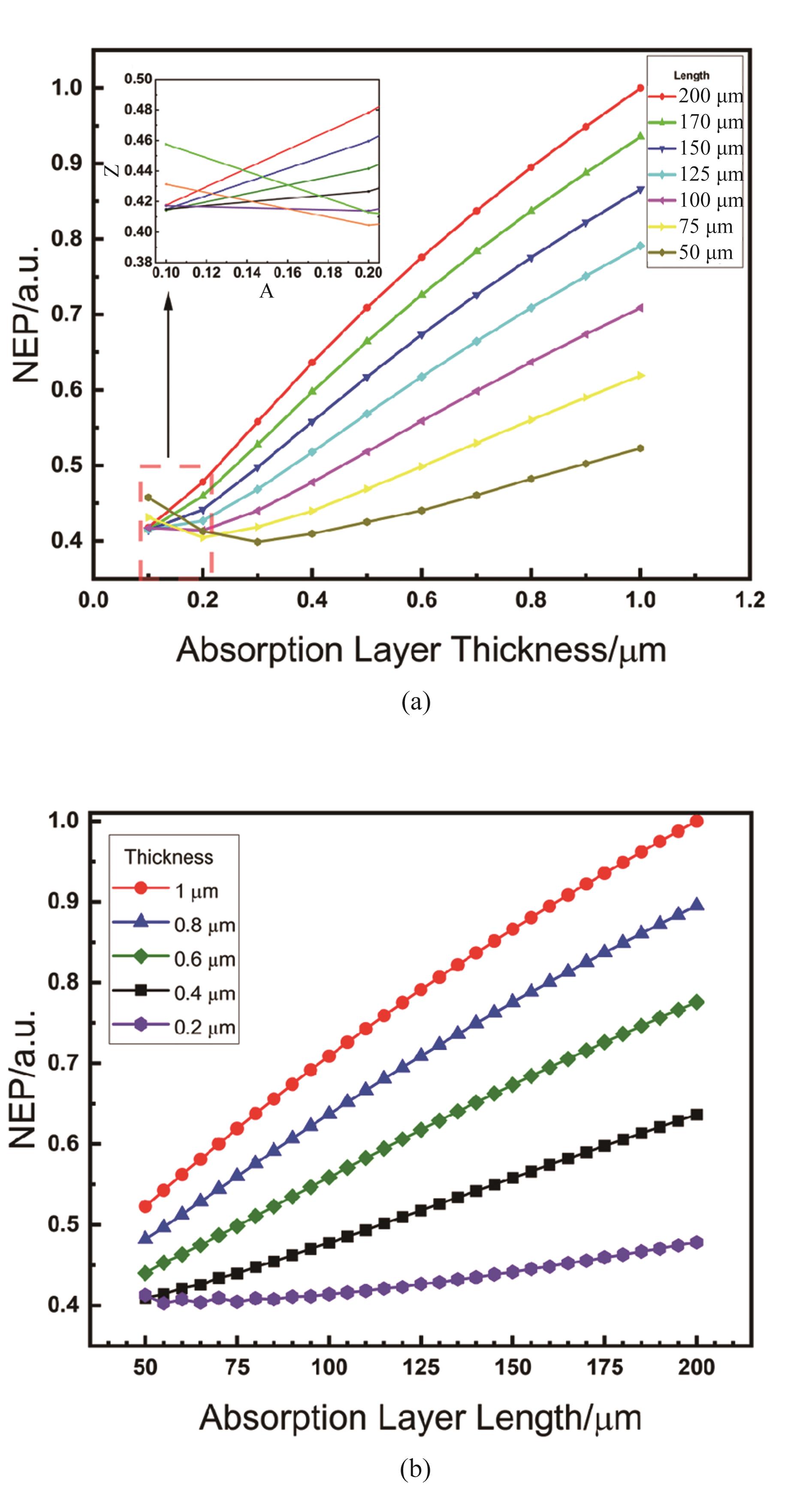 摘要:在近红外领域,已经利用片上波导和谐振器实现了分子的光谱检测。然而在中红外波段,许多传感器仍使用芯片外光源和探测器,这限制了化学传感芯片的集成度和灵敏度。本文设计了一种 InAs/GaAsSb 超晶格中红外波导集成探测器,采用 GaAsSb 作为中红外波导,波导层和 InAs/GaAsSb 超晶格吸收层之间采用倏逝波耦合方式,可以实现低损耗和高响应度的中红外光探测。对器件的光电特性进行了模拟,着重分析了 InAs/GaAsSb 超晶格光电探测器与 GaAsSb 波导集成的影响因素,得到了吸收区的最优厚度和长度。当吸收区的厚度为0.3 μm、长度为50 μm时,噪声等效功率最低,量子效率可以达到68.9%。基于Ⅲ-Ⅴ族材料的波导探测器更容易集成中红外光源,实现中红外的片上集成光电检测芯片。
