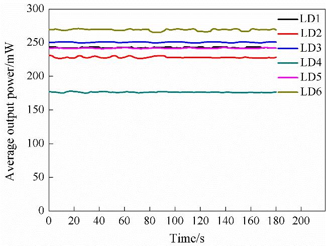 摘要:本文针对无人机空中目标探测系统的空间限制,提出了一种多光束可分路扫描式被动调Q微片阵列全固态激光器的方案,采用六管芯半导体激光器阵列端面紧凑泵浦长条状的Nd:YAG/Cr4+:YAG键合晶体,在每一路1.6 W的泵浦功率下,产生了6路波长为1 064.4 nm、脉冲宽度为2.4 ns、光束质量为1.39、峰值功率为3.75 kW、重复频率可达22 kHz的输出激光,整个系统的体积仅为2 cm×2 cm×1.5 cm,实现了6路激光同时输出。研究了调Q晶体的初始透过率和输出镜反射率对激光脉冲重复频率和峰值功率的影响机制,重点对泵浦源激光器管芯的出光一致性问题做了深入探讨,通过实验验证了使用一个激光键合晶体产生多路纳秒级窄脉冲激光束的可行性。研究结果以小型化结构实现了被动调Q全固态激光器的多光束出射,对实现激光探测系统光源的小型化和集成化有借鉴意义。