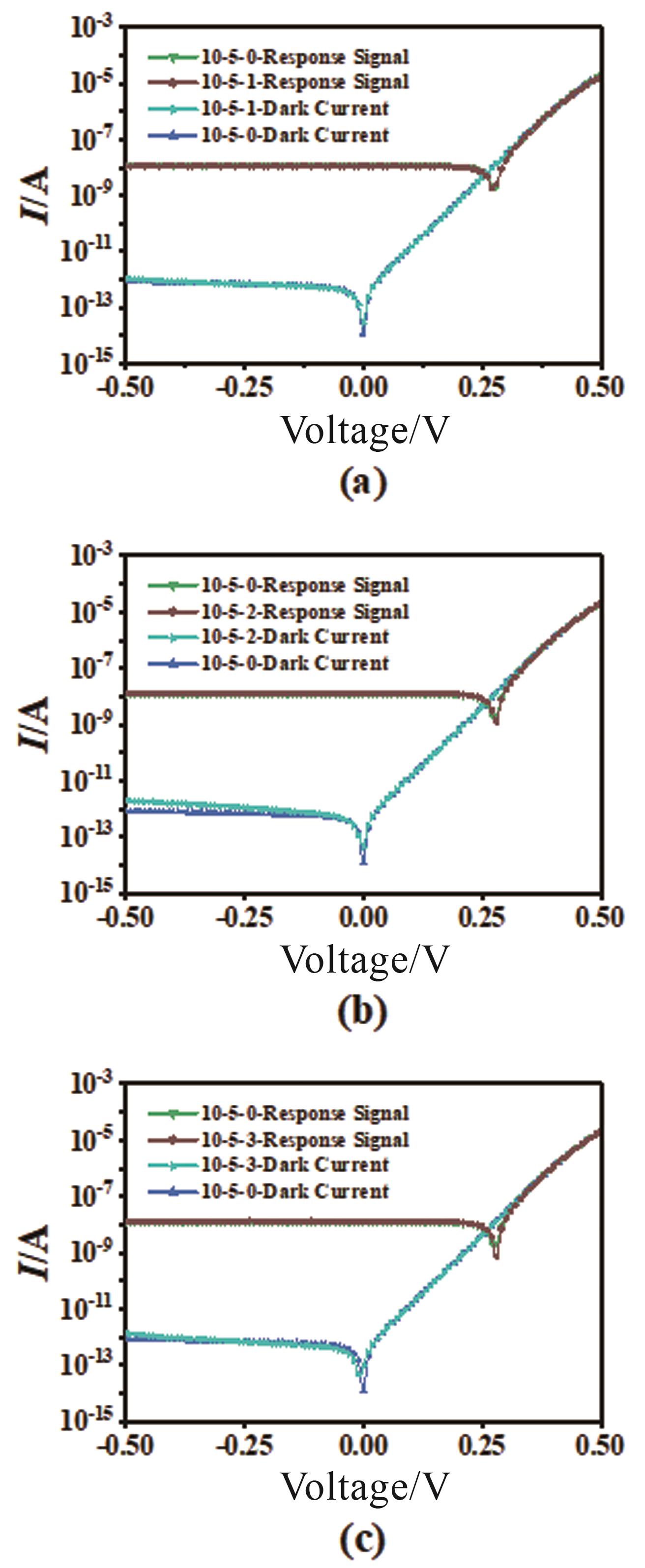 摘要:超小中心距InGaAs探测器的制备需要降低探测器像元间的串音和探测器的暗电流。通过探索微台面InGaAs探测器制备工艺,成功制备了10 μm和5 μm中心距微台面InGaAs光敏芯片测试结构,并对其像元间的串音和探测器的暗电流进行了详细研究。结果表明,当隔离沟槽刻蚀进入吸收层时,微台面结构能有效抑制像元间的串音;但是由于在制备微台面器件过程中造成的材料损伤,由此引起的复合电流和欧姆漏电流的增加,会导致探测器暗电流增幅超过一个数量级。研究结果为制备超小中心距InGaAs焦平面探测器提供了新思路和启示。