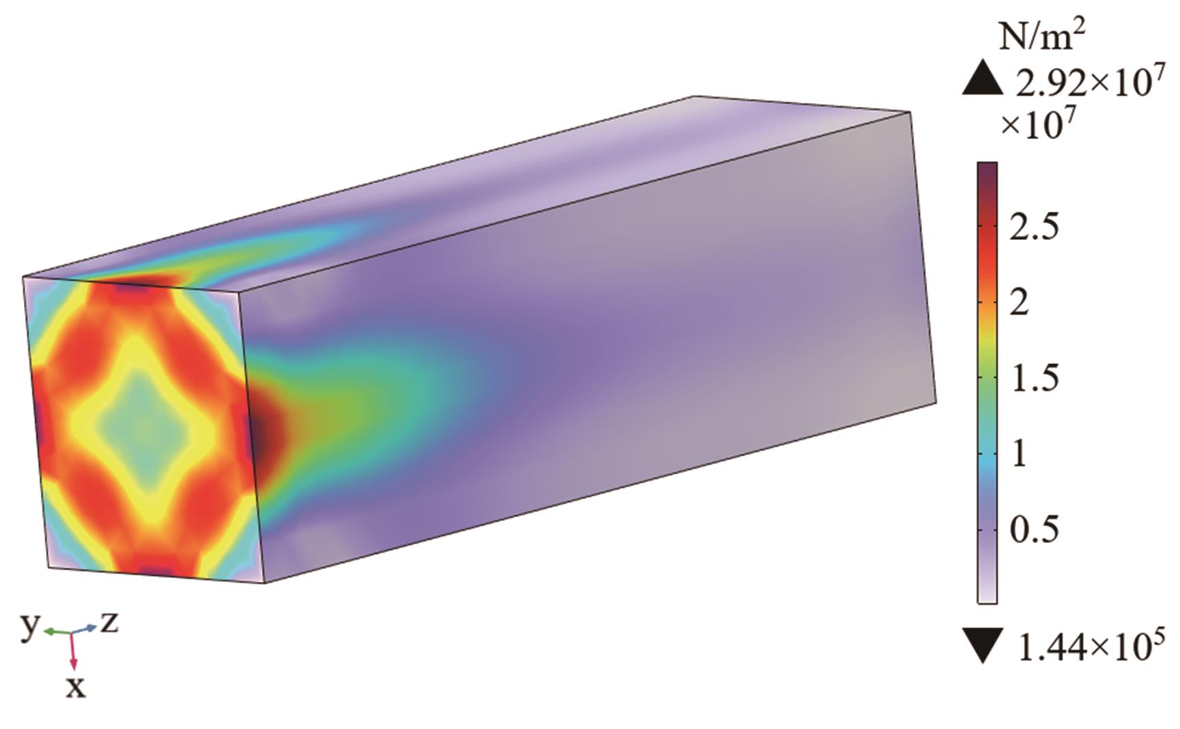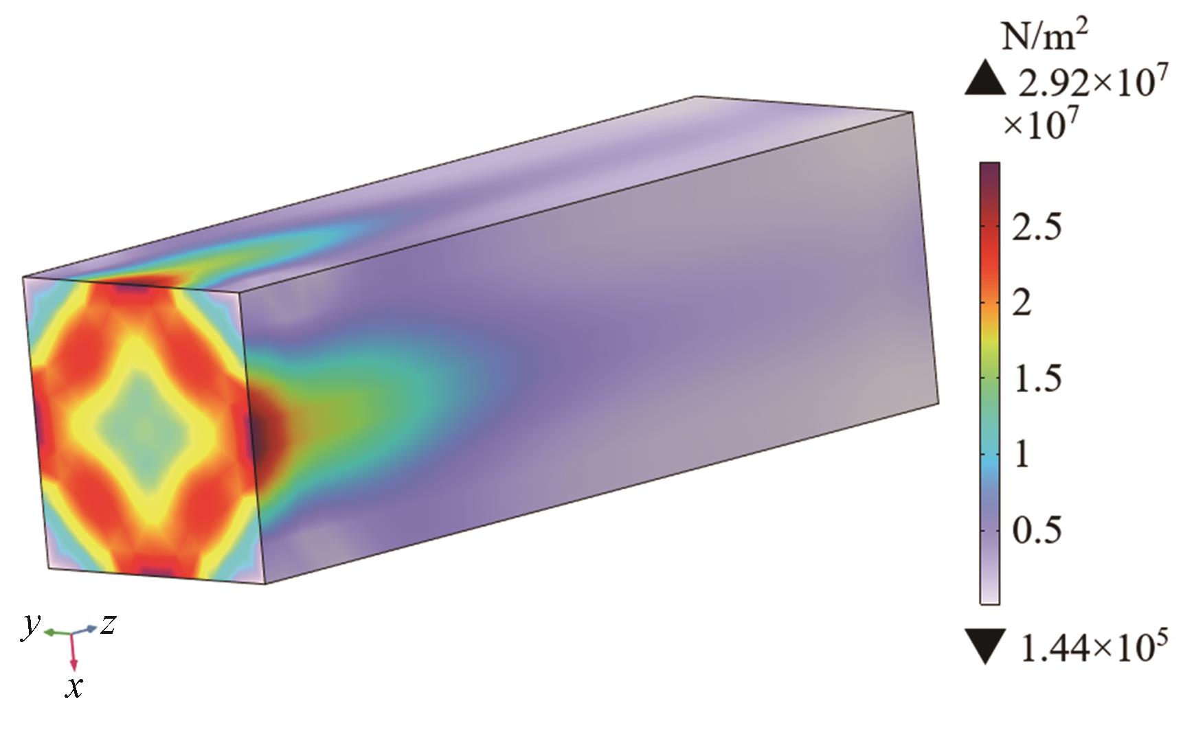 摘要:LD直接泵浦固体激光器具有原理简单、体积小和结构紧凑等优点,该结构用于实现3~5 μm波段的中红外激光输出时具备较大优势。然而,相较于常规近红外LD泵浦的固态激光器,LD直接泵浦中波红外固体激光器存在着较大的量子缺陷,可能导致较大的热损伤并限制其功率的进一步提升。为解决这一问题,本文提出了减小晶体比表面积和改善晶体结构释放热能的方法,并确定了氟化钇钡激光晶体(Ho3+:BY2F8)的最佳长度。通过COMSOL软件进行了热力学仿真模拟,研究了不同长度激光晶体的冷却结构。实验结果显示,采用长度略短于冷却器的激光晶体可以提高输出功率并较大缓解激光晶体内部的热应力。实验表明,在泵浦重复频率为15 Hz、脉冲宽度为90 μs,激光器输出波长约为3.9 μm时的单脉冲能量为7.28 mJ,此值长度约为10 mm晶体输出能量(2.81 mJ)的3倍。这一研究结果为未来构建实用化的中波红外激光器铺平了道路。