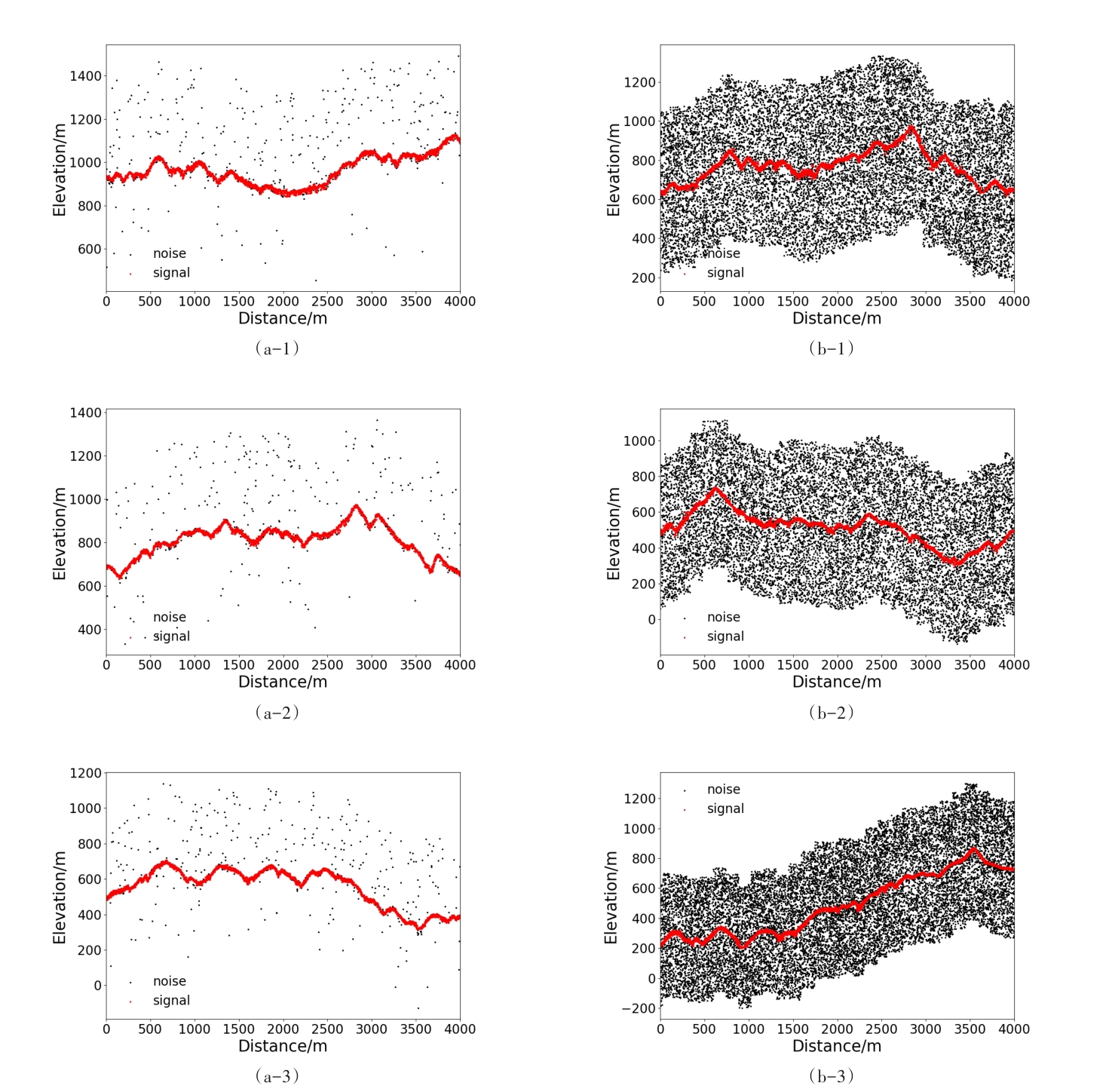摘要:光子计数激光雷达采用单光子探测器,受背景环境、目标特征和仪器性能等因素的影响,在记录目标散射/反射回波信号的同时还记录了大量的背景噪声。为实现海量光子点云中地物信号光子的高精准识别,本文提出利用两级体素的光子点云自适应降噪方法,包括:1)利用光子点云的空间分布特征构建大尺度的体素,结合体素的密度属性筛选包含密集信号光子点云的体素,实现光子点云的粗降噪;2)基于最近邻距离建立粗降噪后光子点云的小尺度体素,并利用拓扑关系进一步提取聚集于地物表面的信号光子。以Ice, Cloud and land Elevation Satellite-2/Advanced Topographic Laser Altimeter System(ICESat-2/ATLAS)获取白昼与夜晚光子点云的ATL03级数据为实验数据,将提出方法与改进Density-Based Spatial Clustering of Applications with Noise(DBSCAN)、改进Ordering points to identify the clustering structure(OPTICS)以及ATL08级数据产品进行比较分析。结果表明,该方法具有最优的性能表现,其平均精度(P)、召回率(R)和F1分数(F1)分别达到0.98、0.97和0.98。
