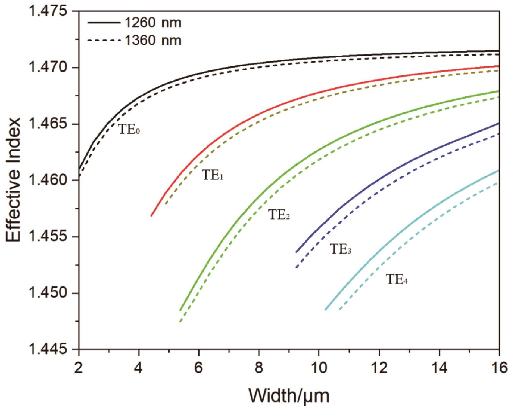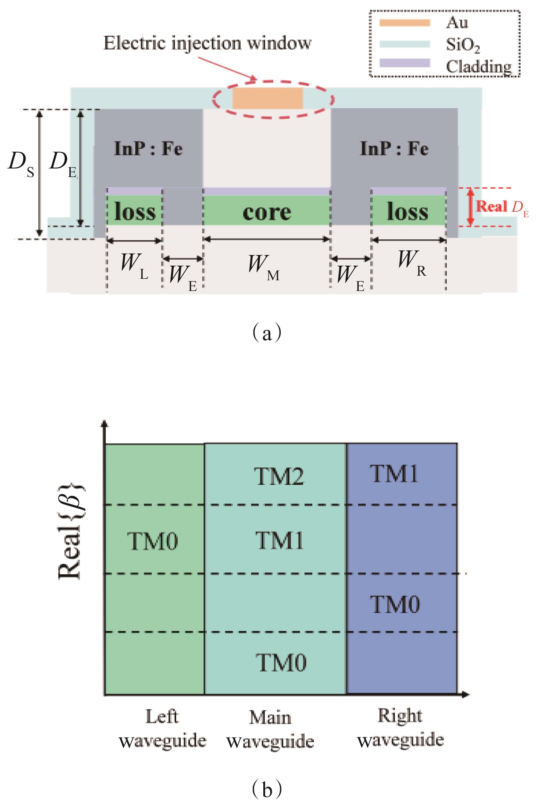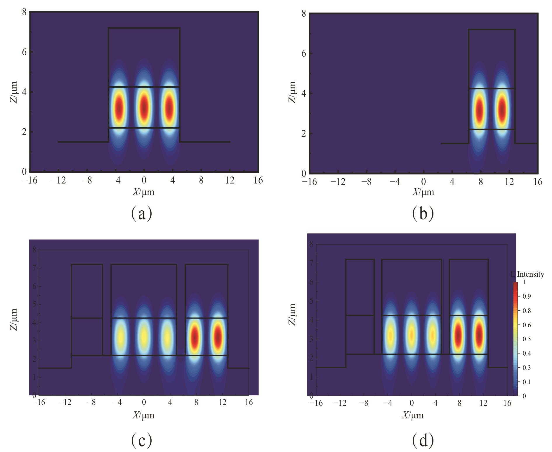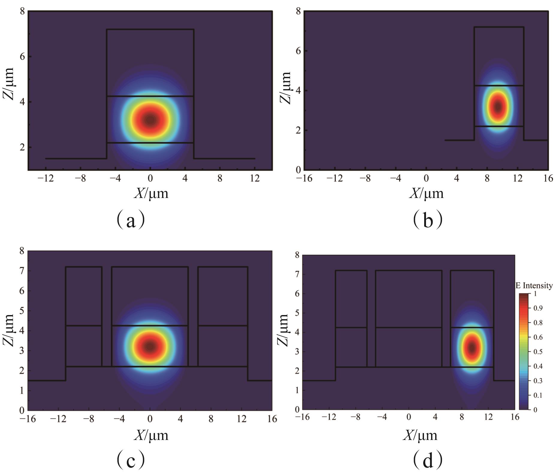 Abstract:In the process of power scaling large-area Quantum Cascade Lasers (QCLs), challenges such as degradation of beam quality and emission of multilobed far-field modes are frequently encountered. These issues become particularly pronounced with an increase in ridge width, resulting in multimode problems. To tackle this, an innovative multi ridge waveguide structure based on the principle of supersymmetry (SUSY) was proposed. This structure comprises a wider main waveguide in the center and two narrower auxiliary waveguides on either side. The high-order modes of the main waveguide are coupled with the modes of the auxiliary waveguides through mode-matching design, and the optical loss of the auxiliary waveguides suppresses these modes, thereby achieving fundamental mode lasing of the wider main waveguide. This paper employs the finite difference eigenmode (FDE) method to perform detailed structural modeling and simulation optimization of the 4.6 μm wavelength quantum cascade laser, successfully achieving a single transverse mode QCL with a ridge width of 10 μm. In comparison to the traditional single-mode QCL(with a ridge width of about 5 μm), the MRW structure has the potential to increase the gain area of the laser by 100%. This offers a novel design concept and methodology for enhancing the single-mode luminous power of mid-infrared quantum cascade lasers, which is of considerable significance.