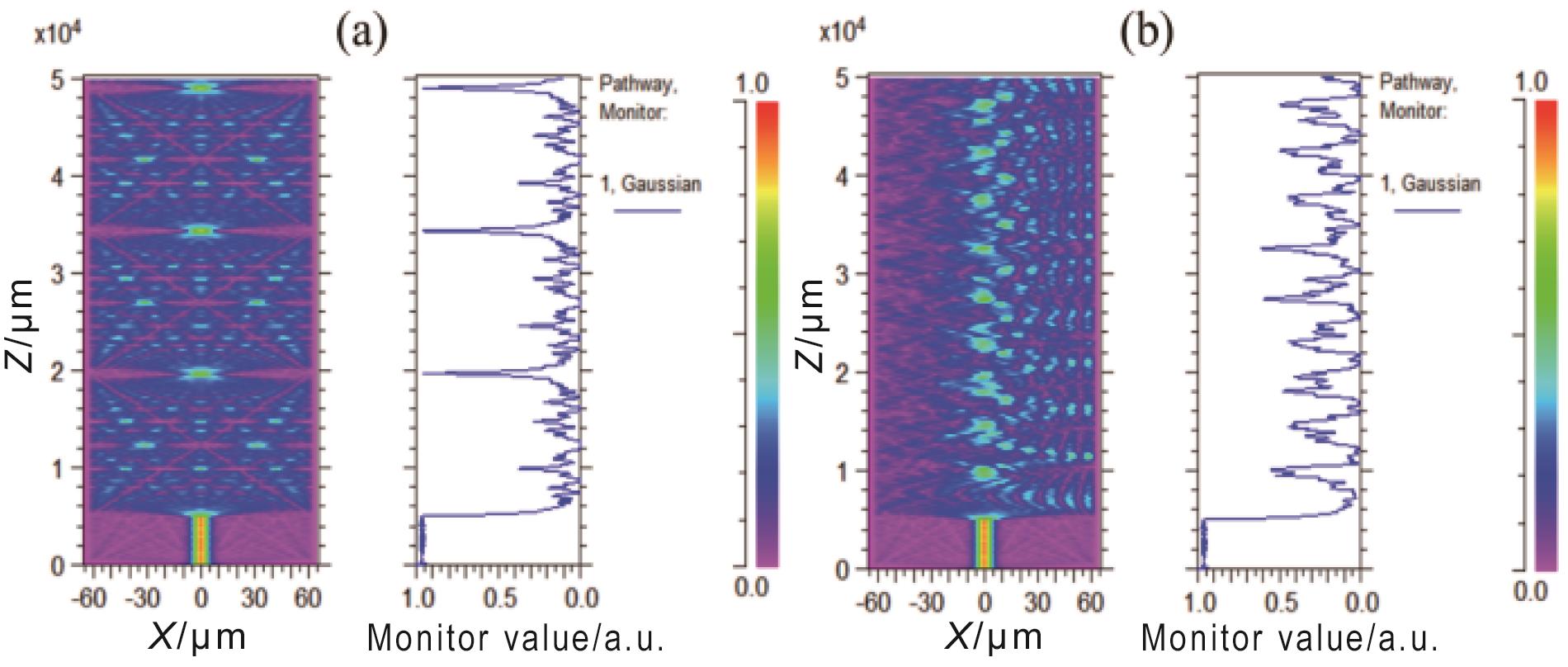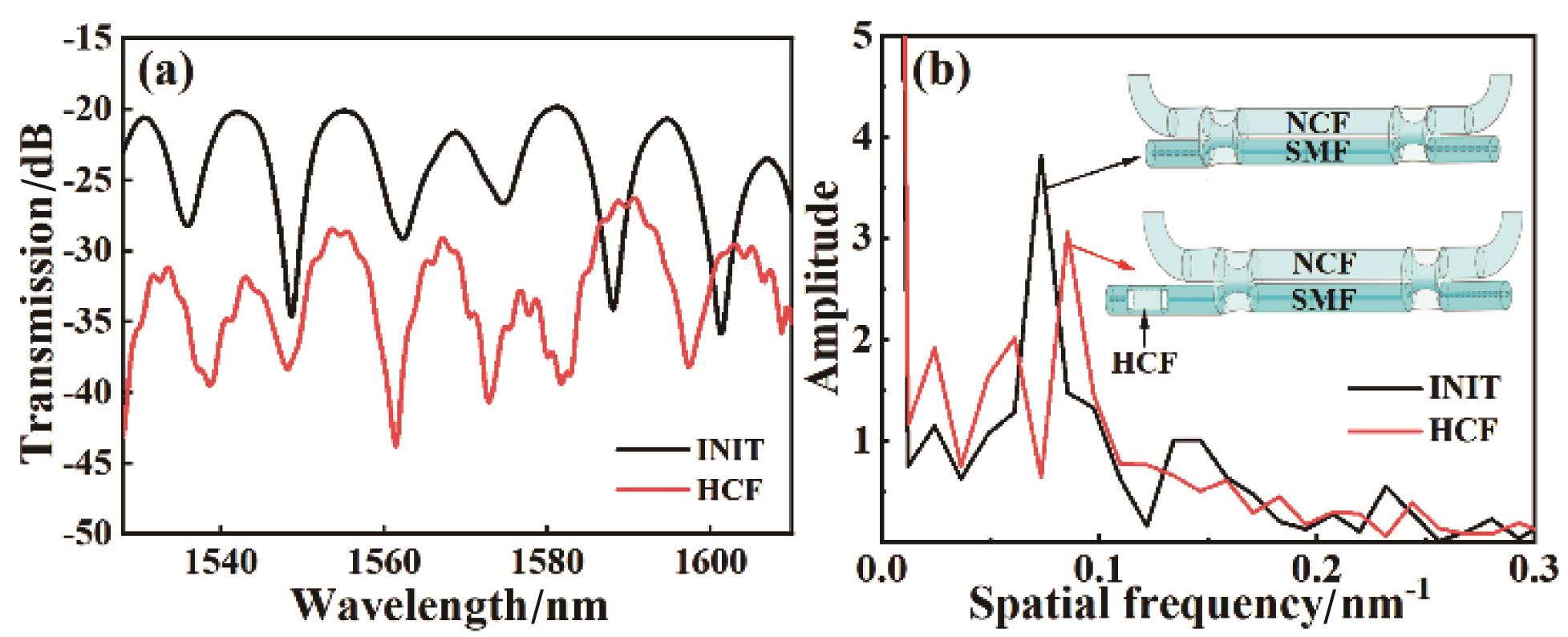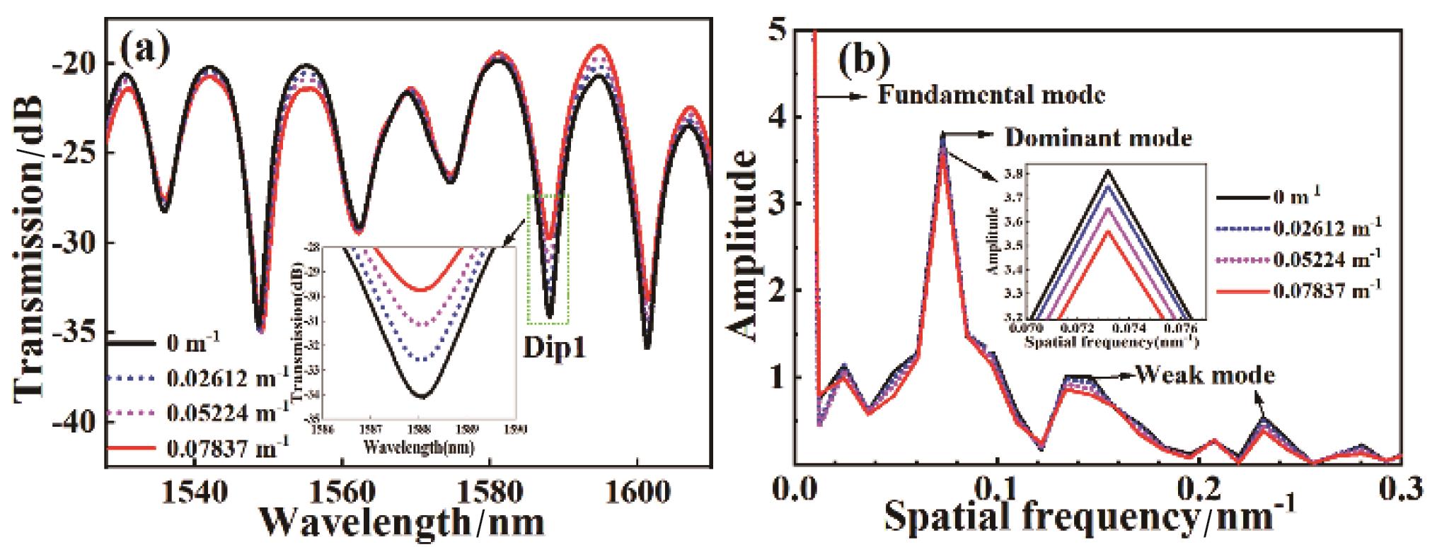 Abstract:A novel near-infrared all-fiber mode monitor based on a mini-two-path Mach-Zehnder interferometer (MTP-MZI) is proposed. The MTP-MZI mode monitor is created by fusing a section of (no-core fiber ,NCF) and a (single-mode fiber ,SMF) together with an optical fiber fusion splicer, establishing two distinct centimeter-level optical transmission paths. Since the high-order modes in NCF transmit near-infrared light more sensitively to curvature-induced energy leakage than the fundamental mode in SMF, the near-infrared high-order mode light leaks out of NCF when the curvature changes, causing the MTP-MZI transmission spectrum to change. By analyzing the relationship between the curvature, transmission spectrum, and spatial frequency spectrum, the modes involved in the interference can be studied, thereby revealing the mode transmission characteristics of near-infrared light in optical fibers. In the verification experiments, higher-order modes were excited by inserting a novel hollow-core fiber (HCF) into the MTP-MZI. When the curvature of the MTP-MZI changes, the near-infrared light high-order mode introduced into the device leaks out, causing the transmission spectrum to return to its original state before bending and before the HCF was spliced. The experimental results demonstrate that the MTP-MZI mode monitor can monitor the fiber modes introduced from the external environment, providing both theoretical and experimental foundations for near-infrared all-fiber mode monitoring in optical information systems.