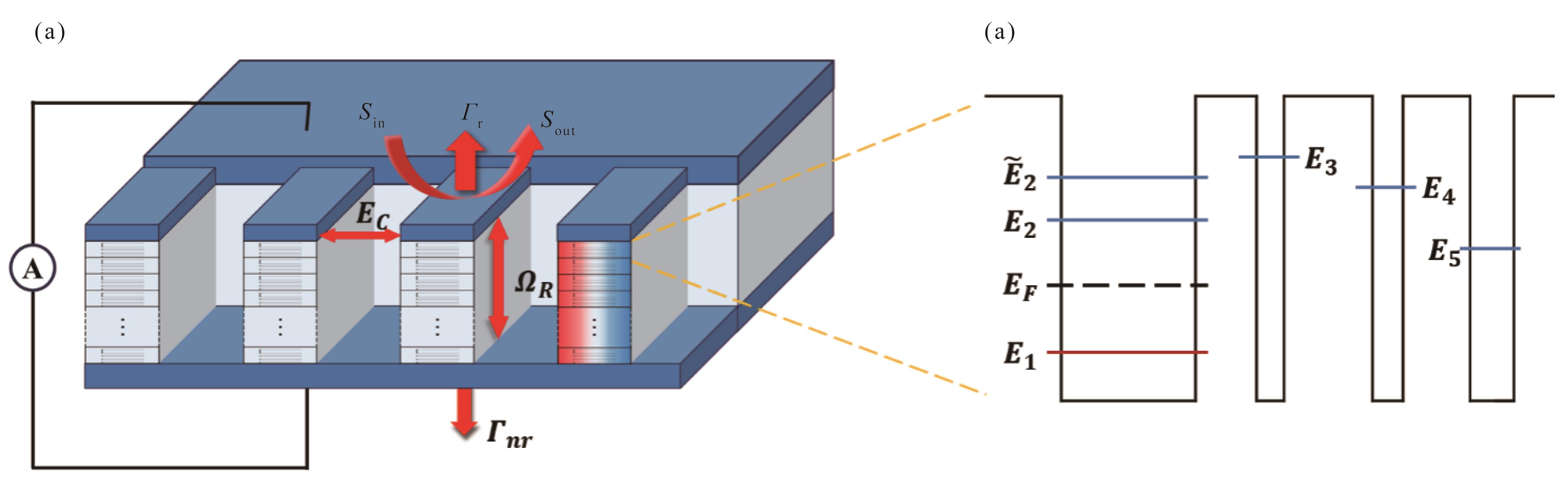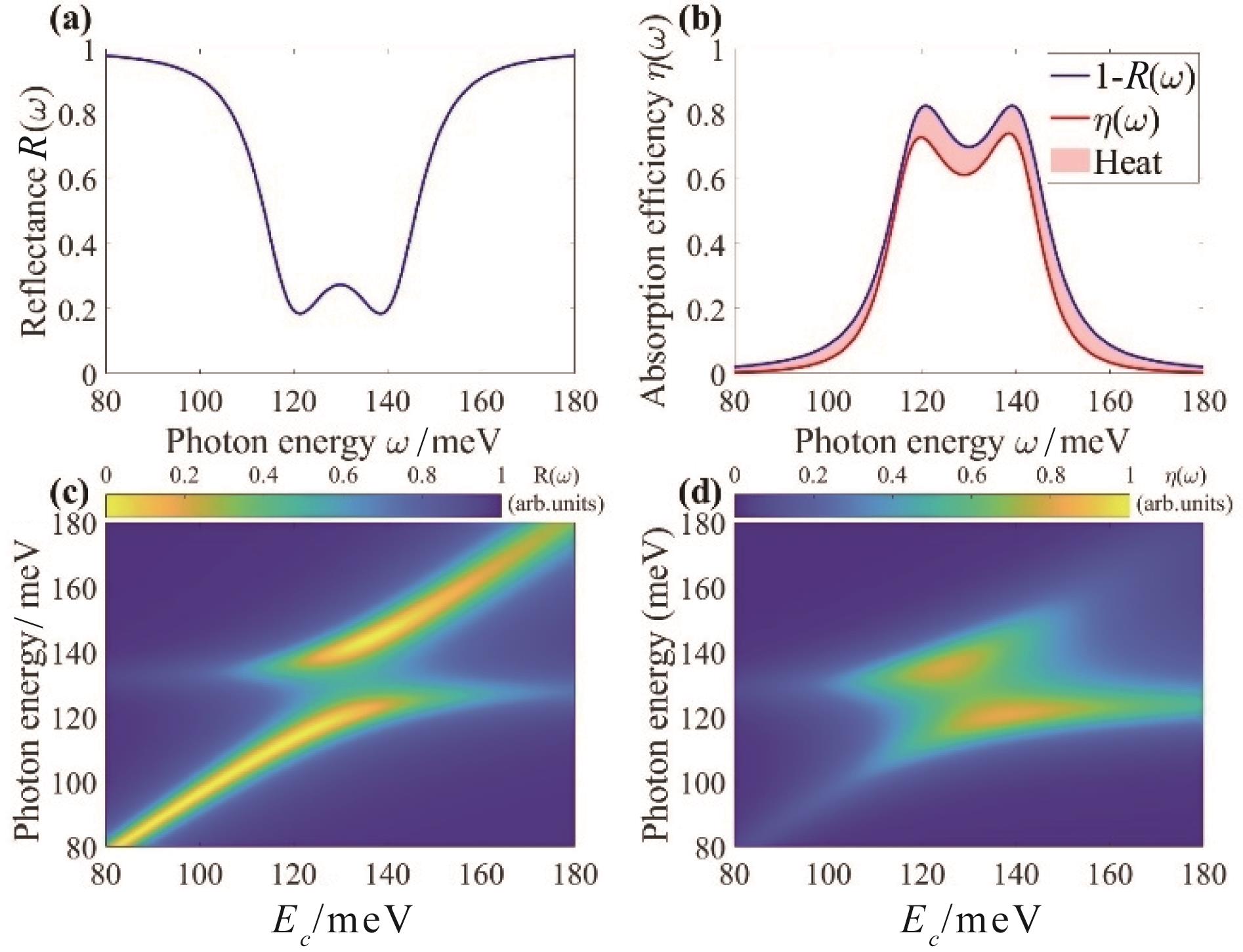 Abstract:To enhance the net photoelectric conversion efficiency of quantum well infrared photodetectors, this study investigates the matching conditions between radiative dissipation and coupling strength in devices operating in the strong light-matter coupling regime. A critical coupling model distinct from the conventional intrinsic and radiative dissipation matching is proposed. Through an analytical model, the contributions of intrinsic thermal dissipation and coupling strength to the critical conditions are quantified. The results indicate that, with optimized matching parameters, the net photoelectric absorption efficiency, excluding thermal dissipation, can exceed 95%. Moreover, under the synergistic regulation of the strong coupling mechanism and critical coupling conditions, the photodetection response can be enhanced by up to 160%. This work highlights the importance of optimizing dissipation and coupling parameters under strong coupling conditions, providing theoretical and design guidance for improving photoelectric conversion efficiency and enhancing the performance of quantum well infrared photodetectors.