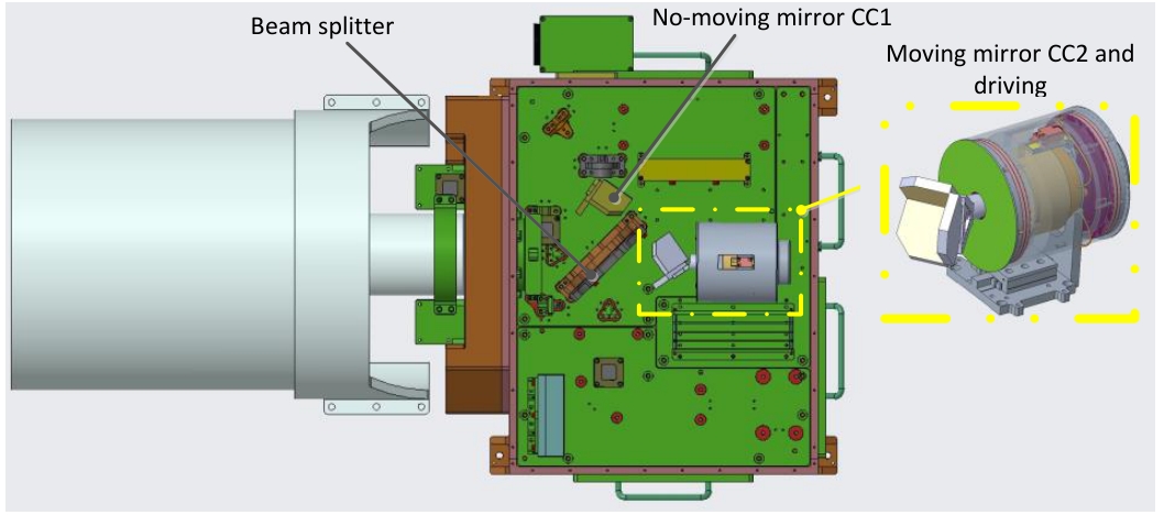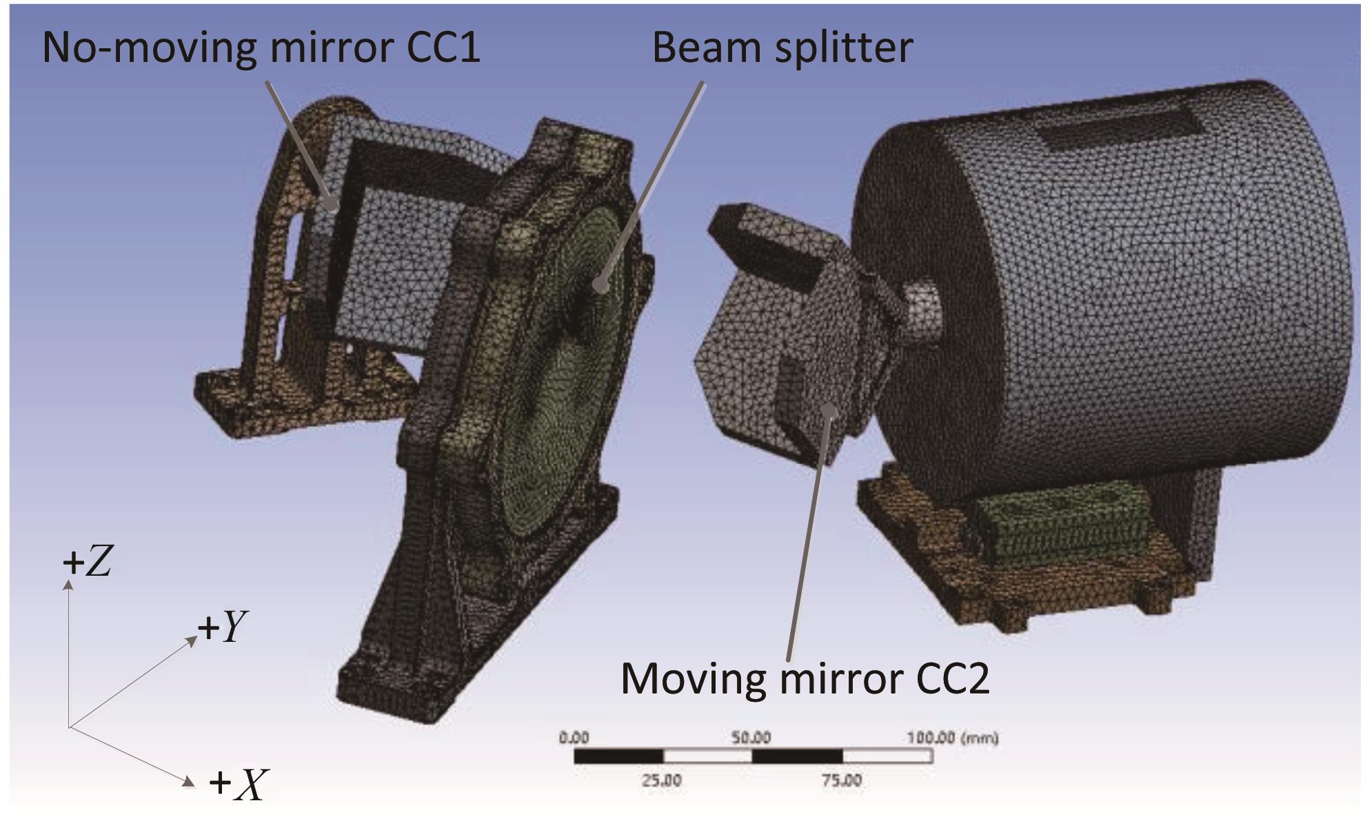 Abstract:The effect of external vibration on the velocity uniformity of the moving mechanism of the angular mirror translational Fourier transform interferometer (hereinafter referred to as interferometer) can be quantitatively analysed by the interferometer optical range difference velocity stability. The article proposes a more comprehensive method of analysing the optical range difference velocity uniformity for the reliability of the interferometer kinematic mechanism under the influence of on-orbit microvibration in the process of space spectroscopy detection. The method incorporates the structural response of the interferometer caused by external excitation into the stability analysis as one of the influencing factors, so as to reflect the reliability of the interferometer in orbit more realistically, and judge the microvibration criticality that the interferometer can withstand more accurately. At the same time, an optical surface model of the interferometer is established to further theoretically characterise the effect of microvibration on the homogeneity of the interferometric mechanism. The method discussed in the article provides a way of thinking for the judgement of the reliability of the mechanism movement under the external excitation perturbation as well as the research on the optimisation of the mechanism control.